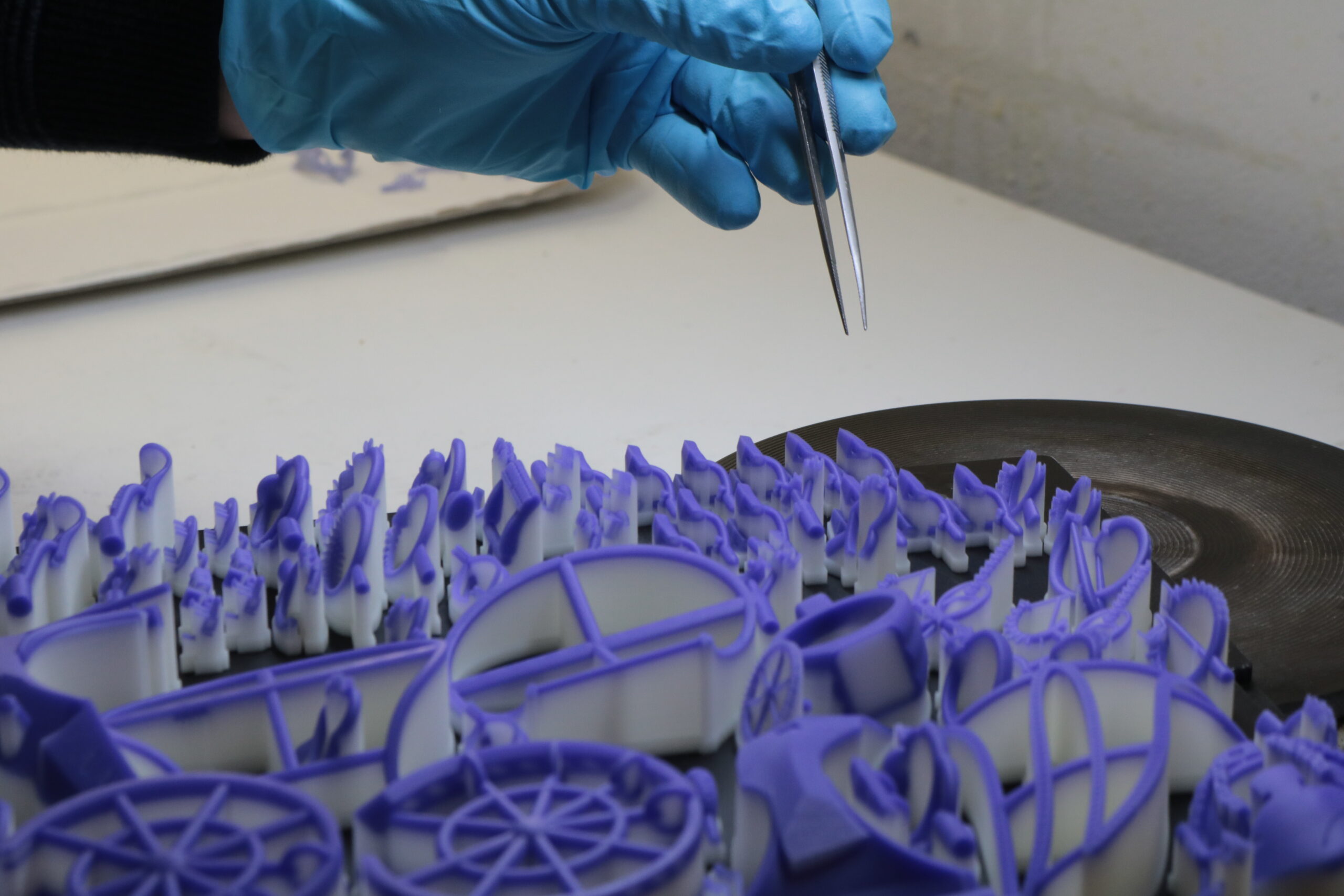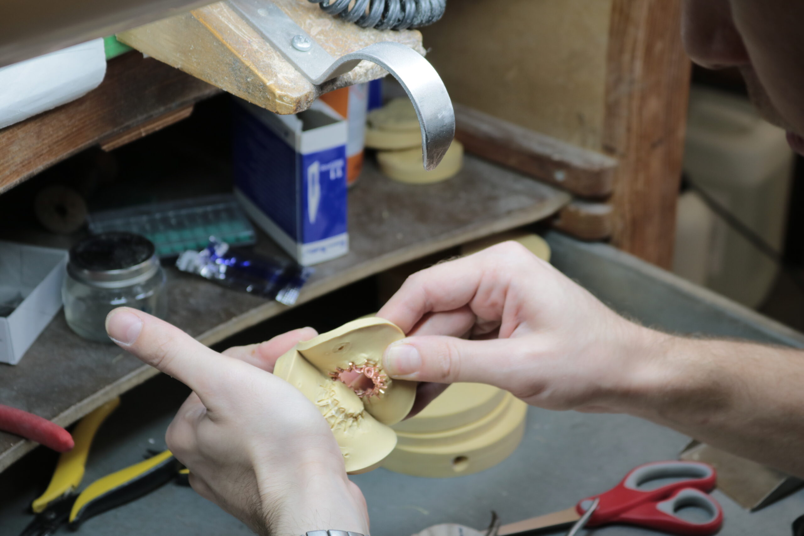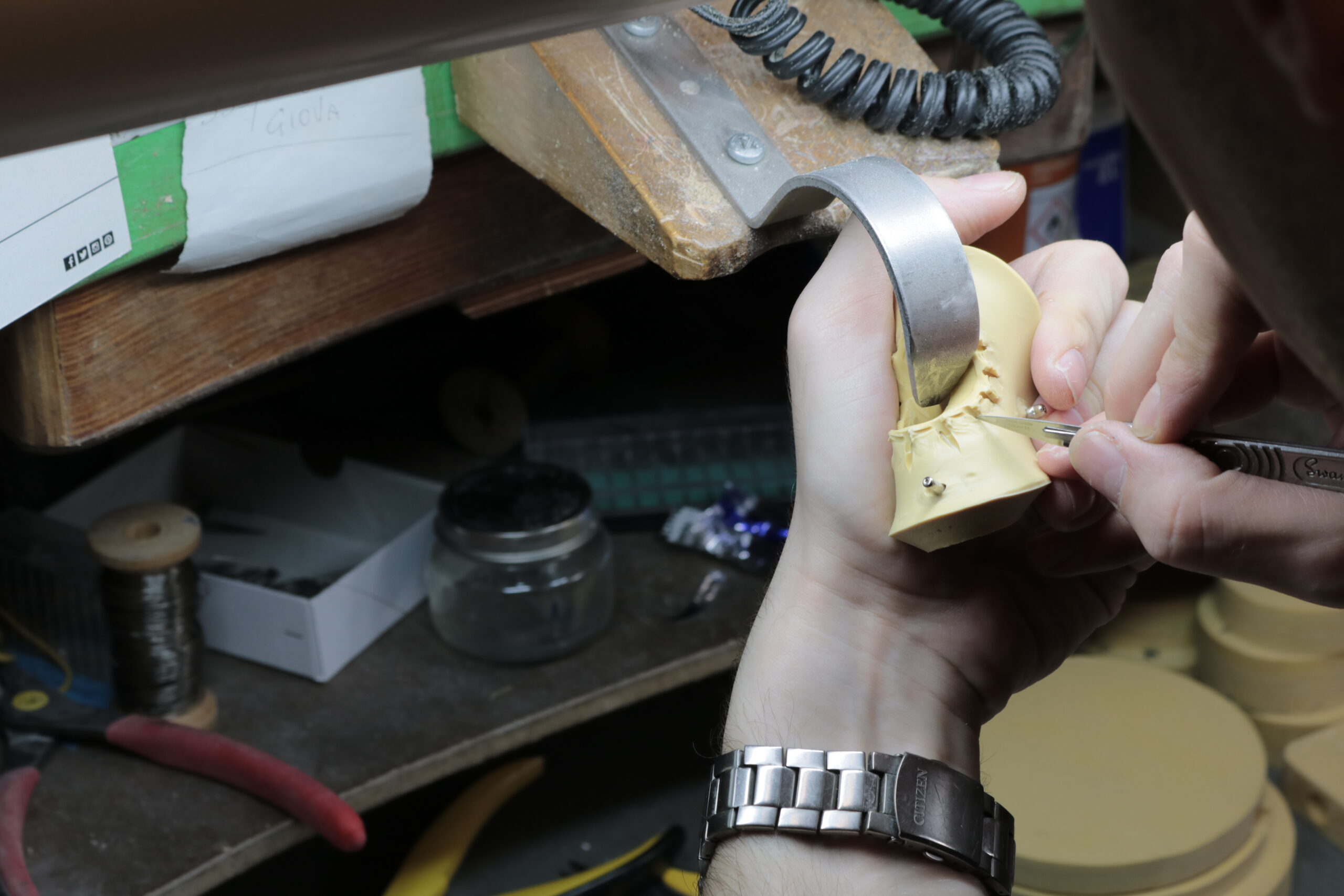 Alla progettazione CAD segue l’esecuzione del prototipo in resina estetica al fine di verificare le proporzioni del modello dal vivo e quindi si procede con la prototipazione in cera microfondibile o resina gommabile, in base alle esigenze del cliente.